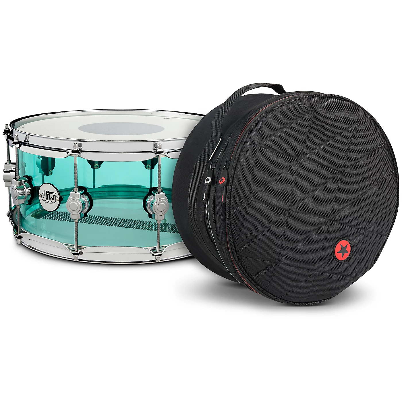 Flash Sale ???? DW DW Design Series Sea Glass Acrylic Snare Drum, Chrome Hardware With Road Runner Bag ????