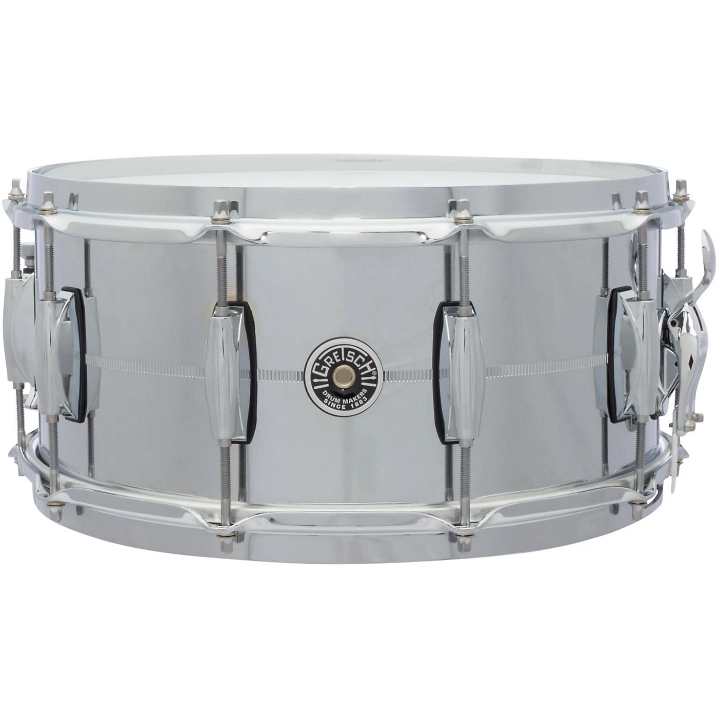 Gretsch Brooklyn series metal snare drums add another professional and distinctive voice to the Gretsch snare line up. The chrome-over-steel shell is offered in various sizes and delivers a versatile tone with a pleasing overtone. All shells include Gretsch “302” 3mm/double-flanged hoops, Lightning throw off and butt plate, “Snap-in” drum key holder, 20-strand snare wire and Gretsch Permatone drum heads. The “302” hoops provide a timbre that is more open and ambient than traditional Gretsch die-cast hoops.