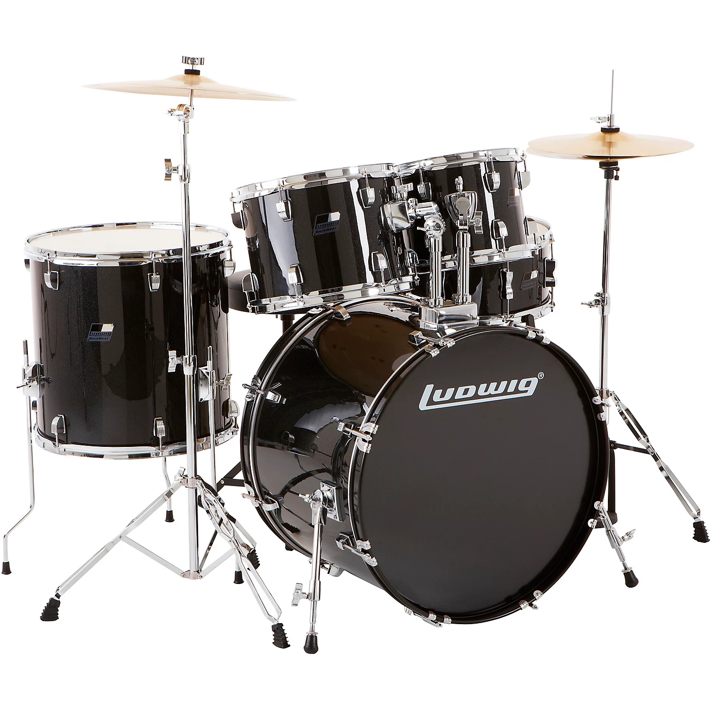 Best Pirce ???? Ludwig Ludwig BackBeat Complete 5-Piece Drum Set With Hardware And Cymbals Black Sparkle ????
