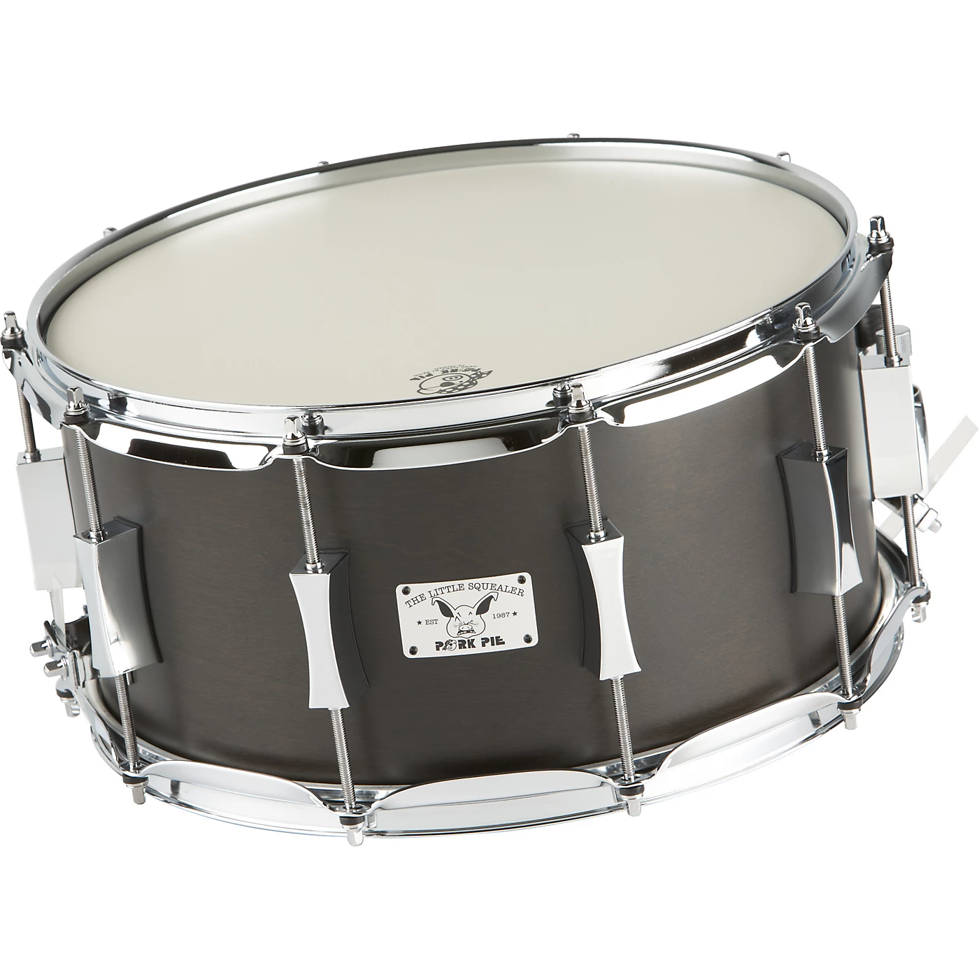 Snare sound is of paramount important to a drummer, and Pork Pie Little Squealer birch/mahogany 14×7″ snare drum provides an instant upgrade to any drum kit. This drum offers a crisp, punchy attack and still manages to infuse depth regardless of the tempo. It delivers resounding tonal quality and, sporting a black satin finish, does so with style.