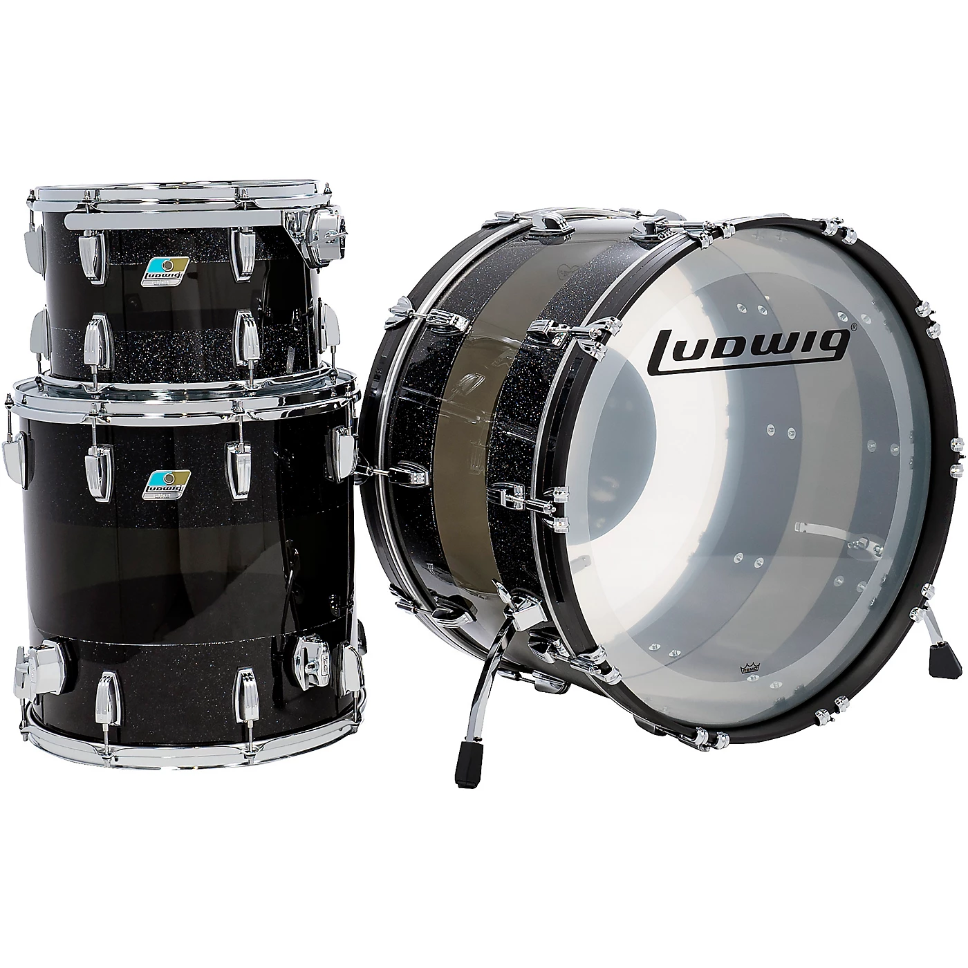 Budget 👏 Ludwig Ludwig Vistalite 50th Anniversary Pro Beat 3-Piece Shell Pack With 24-Inch Bass Drum Black Sparkle/Smoke/Black Sparkle ❤️