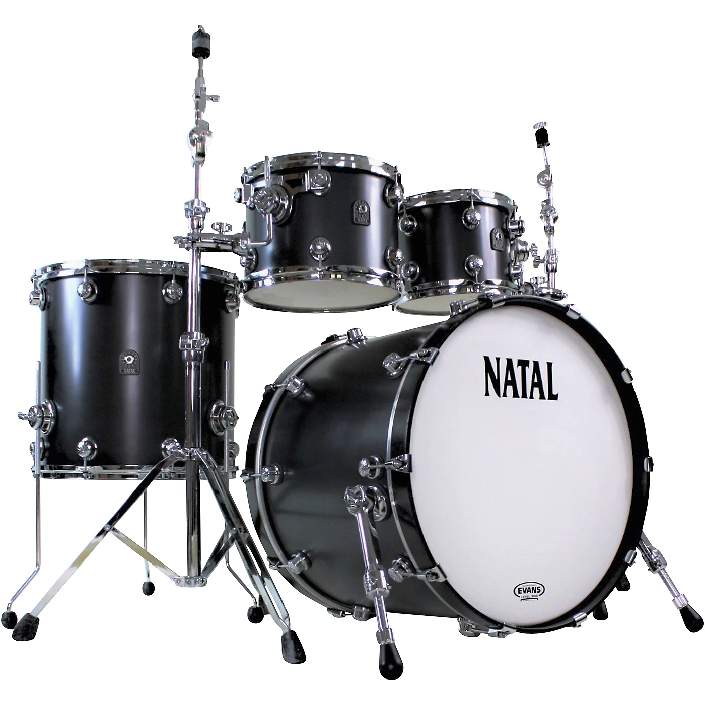 Best deal 😍 Natal Drums Natal Drums Cafe Racer US Fusion 22 4-Piece Shell Pack With 22″ Bass Drum Matte Black Hot Rod Suede 🥰