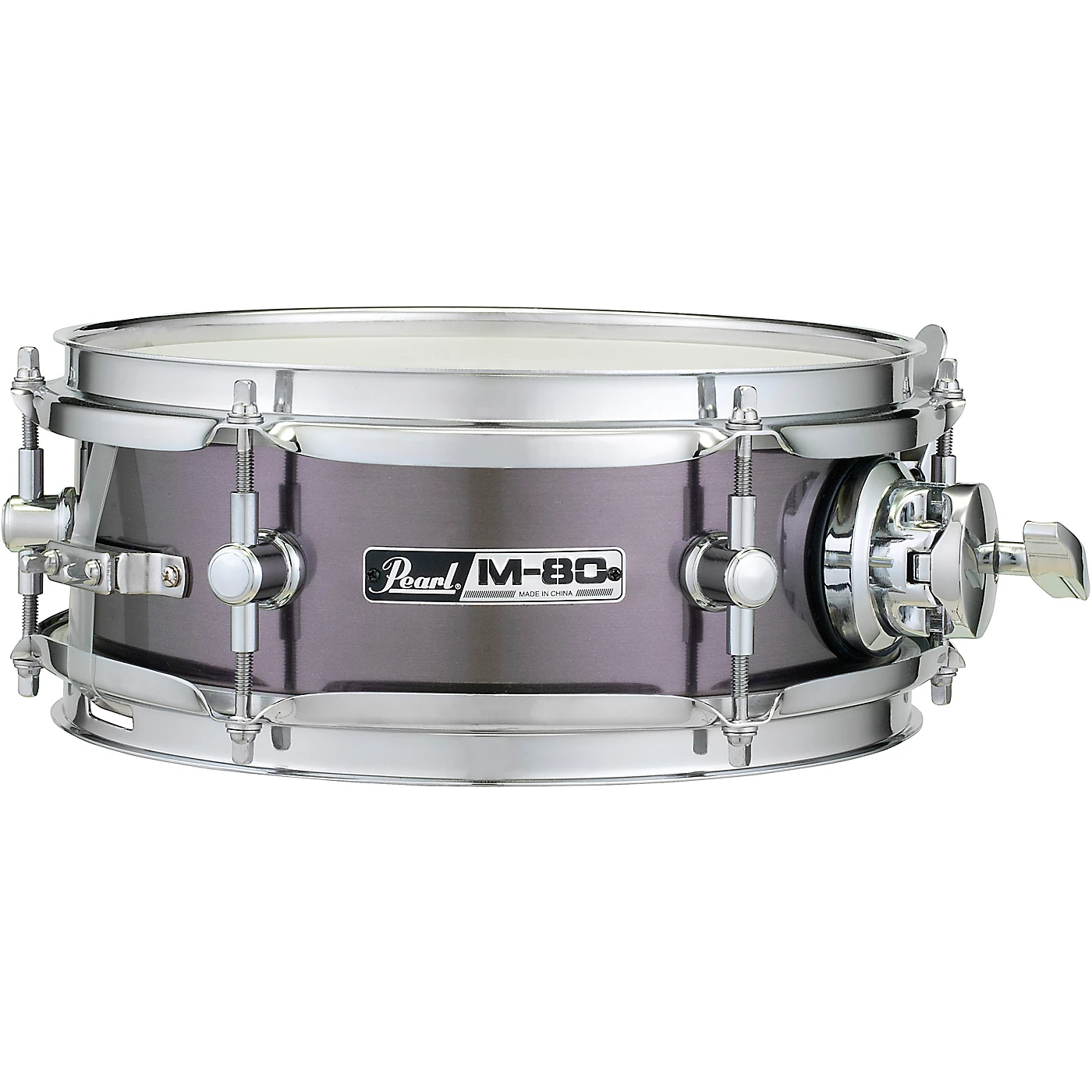 The Pearl M-80 snare drum with brushed pewter finish makes an incredible and striking alternate or side snare. This snare offers poplar wood construction and a compact 10 x 4″ size for explosive power and projection. The drum offers bright, biting tone and mounts to a standard percussion mount or rests on a snare stand.