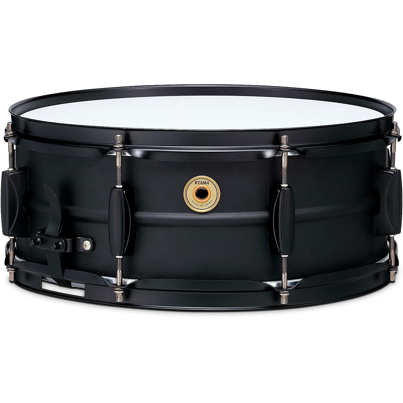 Tama’s Metalworks snare drums offer a bright tone with a tight crispness in high-tuning and a smooth resonance in low-tuning. A 1.2 mm matte black steel shell is designed with a ridge on the center of the shell for structural reinforcement and tonal nuance. The color of the shell hardware is matched to the matte black shell to provide the cutting-edge, contemporary look of this snare.